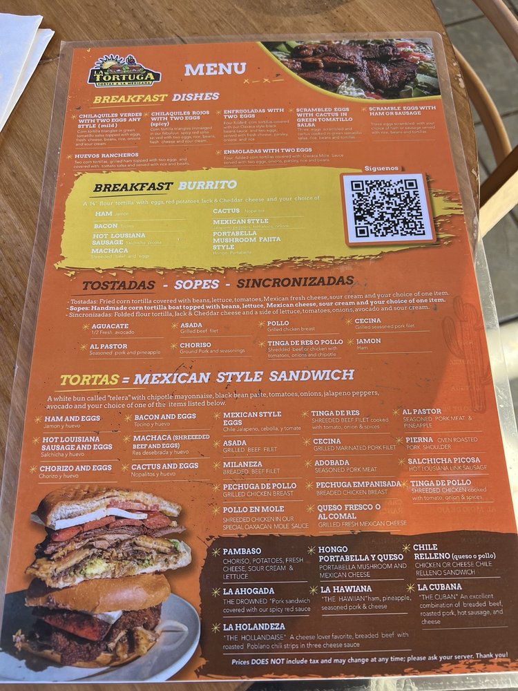 Every bite is a celebration of flavor, as highlighted by guests raving about the Torta Ahogada and the hearty Cubano Torta. La Tortuga excels in both service and ambiance, with exceptional staff ensuring a memorable dining experience. Take advantage of their diverse payment options and outdoor seating, perfect for groups and families. Whether you're seeking a casual brunch or a family dinner, La Tortuga is the destination for delicious, heartwarming meals.